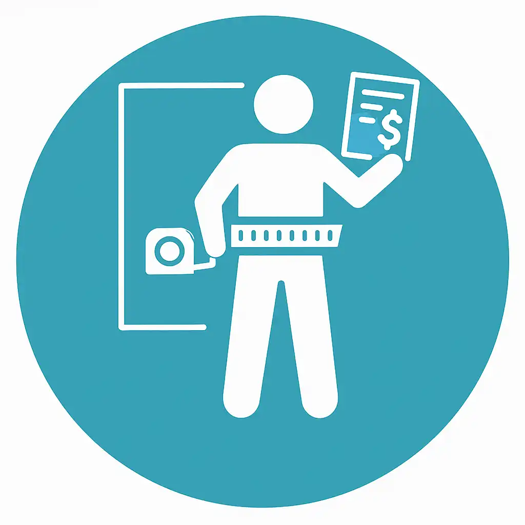 Замерщик производит обмер помещения, рассчитывает необходимое количество материала, рассчитывает стоимость всех необходимых работ, озвучивает окончательную цену на весь комплекс работ (материалы + услуги по укладке).
