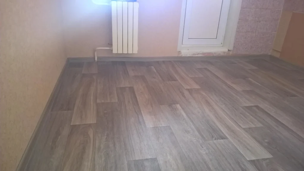 Задачи: укладка линолеума, монтаж плинтуса и порога.